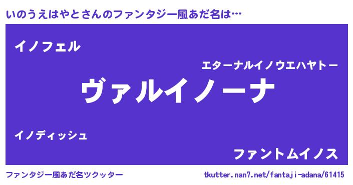 | ヒーロー風カッコイイあだ名 | 『仮面イノダー』『銀牙騎士イノ』 |