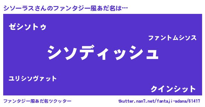 | ヘコむあだ名 | 『シソーラス(震え声)』『シソぷりん』 |