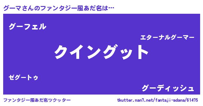 | 男性向けラノベタイトル風あだ名 | 『グーマに滅ぼされるだけの簡単なお仕事です』 |
