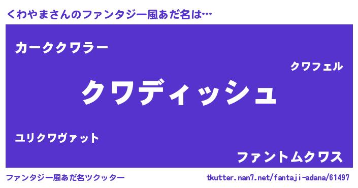 | 欧米人風あだ名 | 『ダルビッシュくわやま』 |