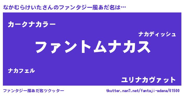 | 意味不明あだ名 | 『とにかく怪しいなかむらけいた』 |