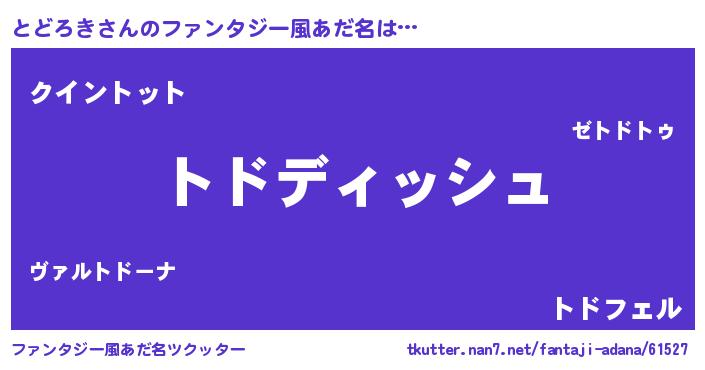 | 自動車の名前っぽいあだ名 | 『デミト』『トンR』『トドティマ』 |