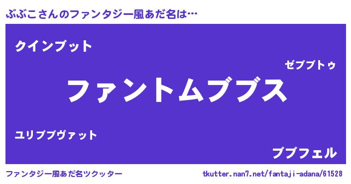 | 男性向けラノベタイトル風あだ名 | 『ダンジョンにぶぶこを求めるのは間違っているだろうか』 |