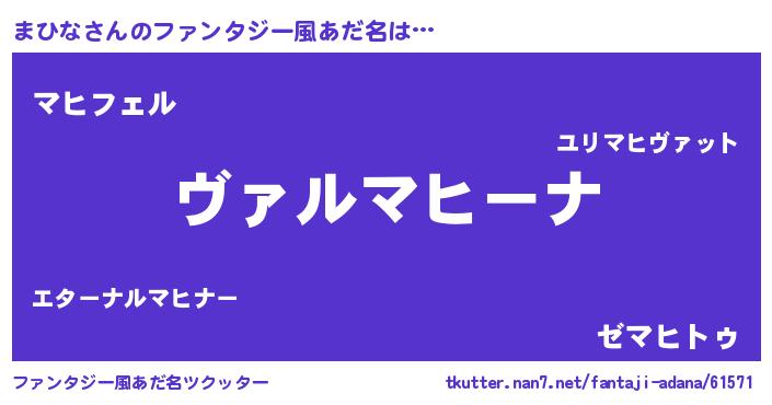 | 欧米人風あだ名 | 『アンジェラ・まひな』『マイケルまひな』 |