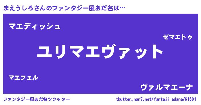| 男性向けラノベタイトル風あだ名 | 『マエウシロスレイヤー』 |