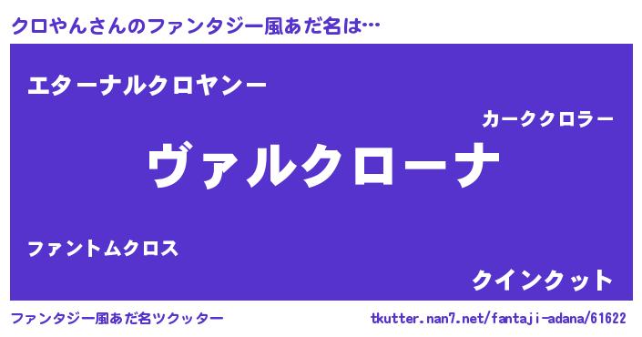 | 男性向けラノベタイトル風あだ名 | 『魔弾の王とクロやん』 |