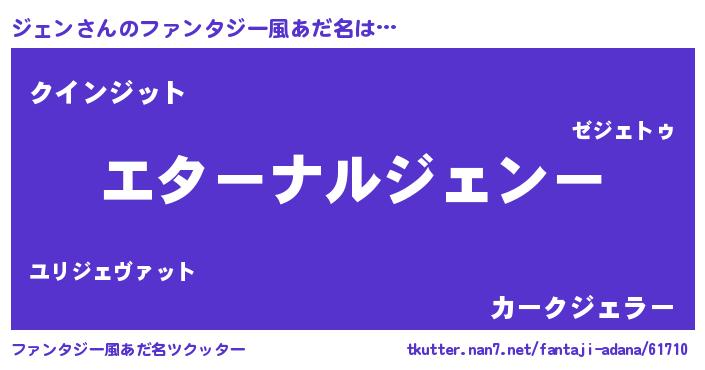 | 意味不明あだ名 | 『ジェンフォーエバー』『自称ジェン』 |