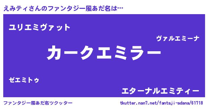 | 欧米人風あだ名 | 『えみティ・ステッグマイヤー』 |