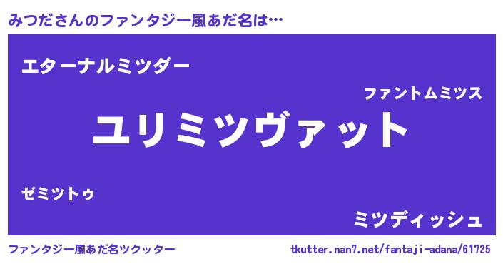 | 女子向けラノベタイトル風あだ名 | 『みつだの玉の輿計画!』『闇のみつだ』 |