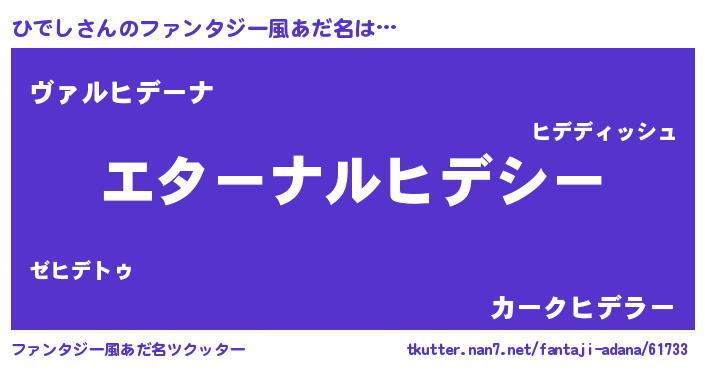 | 男性向けラノベタイトル風あだ名 | 『うちの娘の為ならば、俺はもしかしたらひでしも倒せるかもしれない。』 |