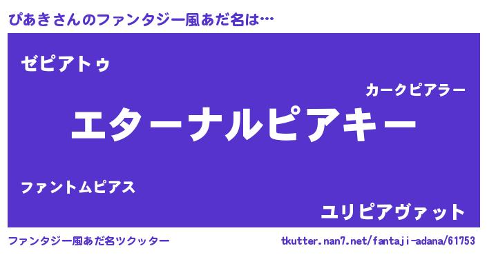 | 意味不明あだ名 | 『ぴあきフォーエバー』『自称ぴあき』 |