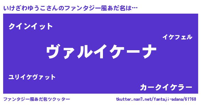 | 意味不明あだ名 | 『住所不定無職いけざわゆうこ(14歳)』 |
