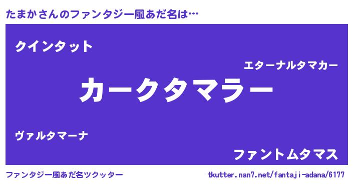 | 自動車の名前っぽいあだ名 | 『フェターマ』『タンR』『タクア』 |