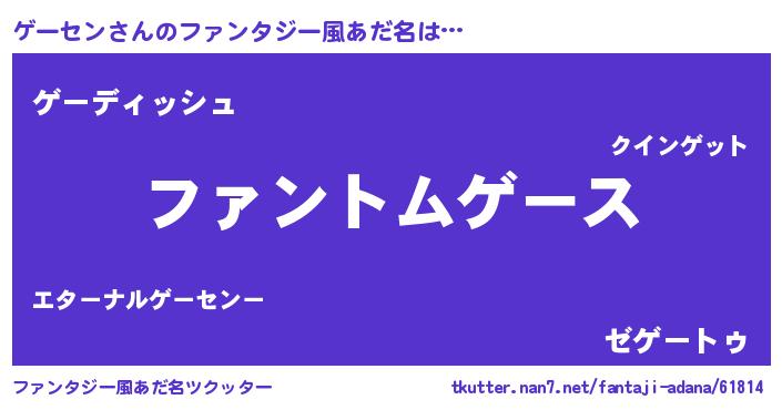 | 自動車の名前っぽいあだ名 | 『ゲント』『デミゲ』『ゲンR』 |