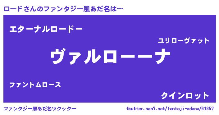 | 男性向けラノベタイトル風あだ名 | 『この素晴らしい世界にロードを!』 |