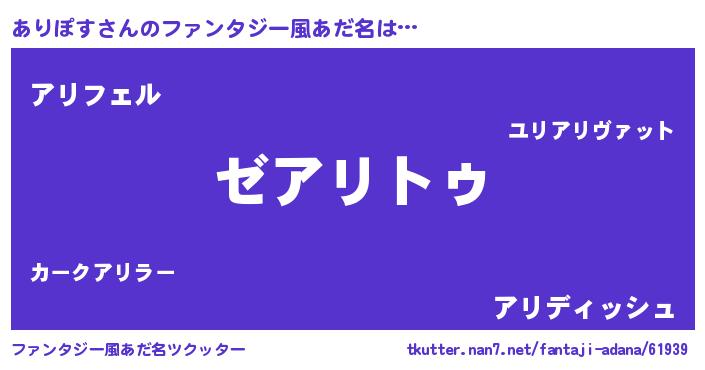 | 男性向けラノベタイトル風あだ名 | 『魔法科高校のありぽす』 |