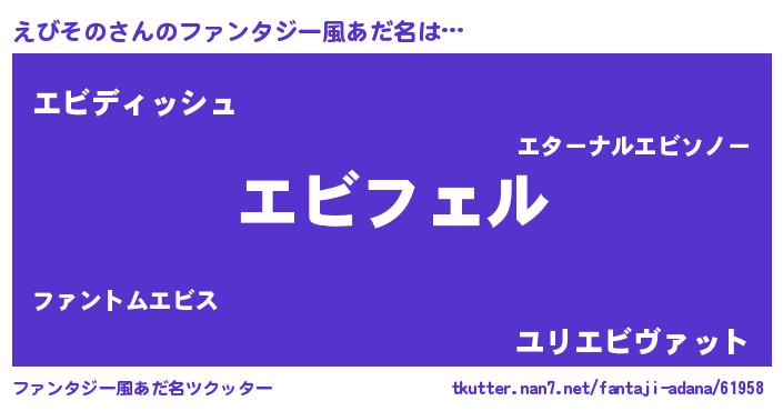 | 意味不明あだ名 | 『ペロリンえびその』『永久保存えびその』 |