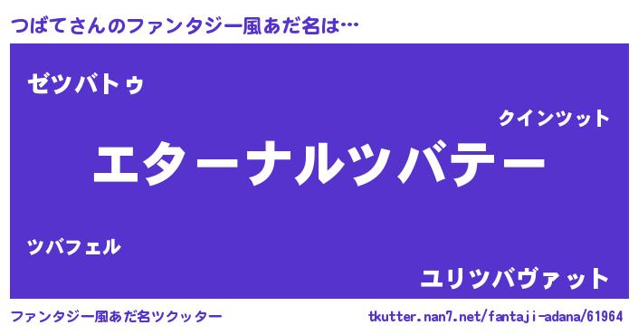 | 意味不明あだ名 | 『つばてフォーエバー』『自称つばて』 |