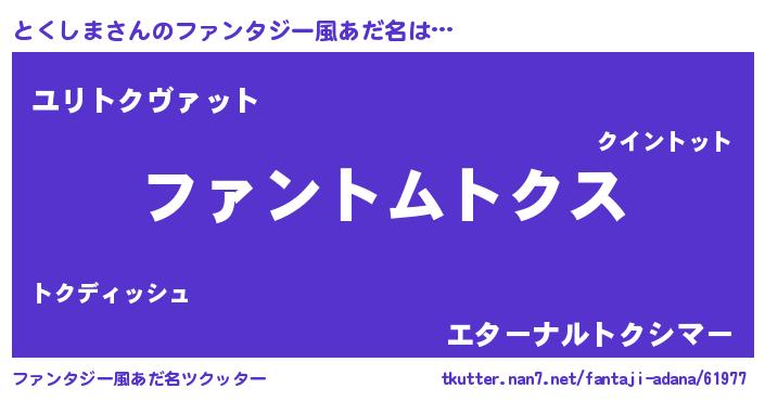 | ポケモン風あだ名 | 『ヒトクシマ』『トクキング』 |