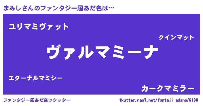 | 男性向けラノベタイトル風あだ名 | 『魔弾の王とまみし』 |