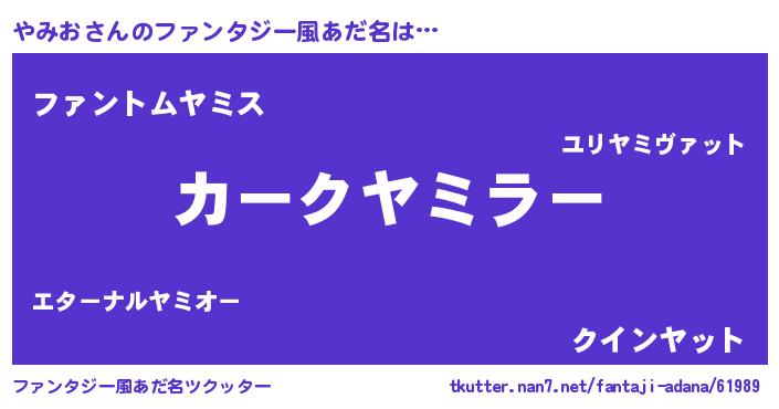 | ヒーロー風カッコイイあだ名 | 『幻影騎士ヤミ』『友情の使者やみお』 |