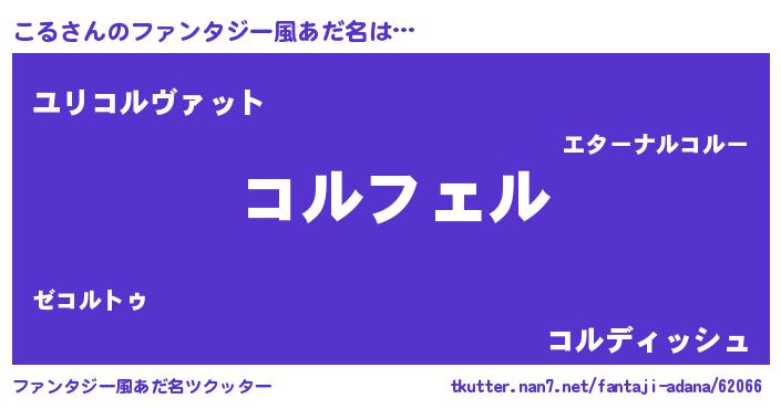 | 女子向けラノベタイトル風あだ名 | 『(仮)こるのやんごとなき事情』 |