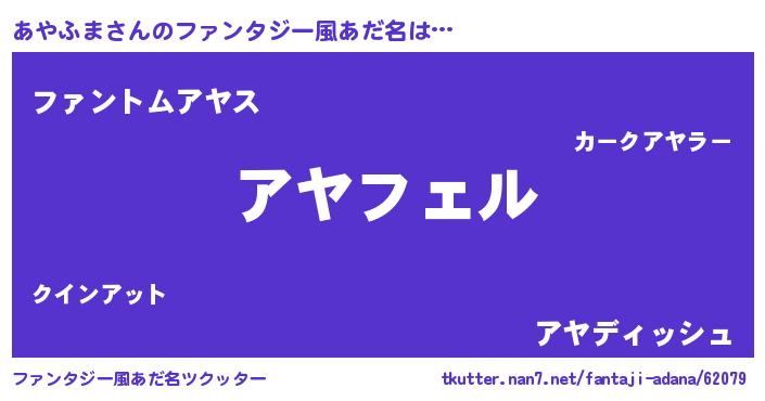 | 男性向けラノベタイトル風あだ名 | 『アヤフマアートオンライン』 |