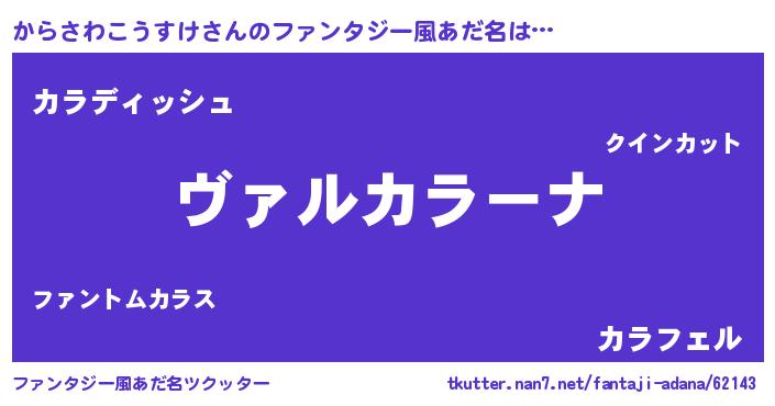 | 男性向けラノベタイトル風あだ名 | 『魔弾の王とからさわこうすけ』 |