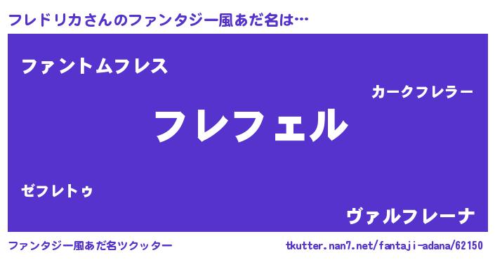 | 意味不明あだ名 | 『ペロリンフレドリカ』『自称フレドリカ』 |