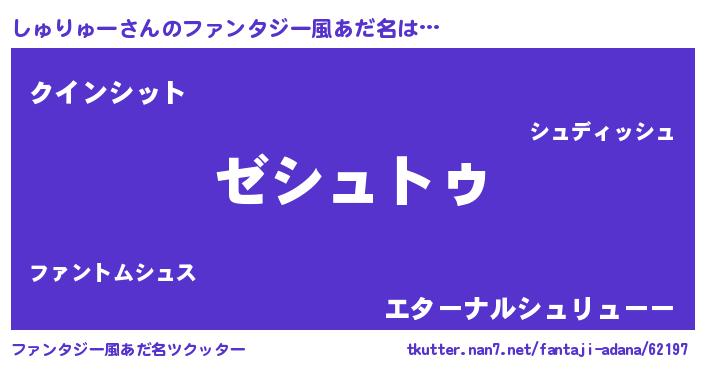 | ヒーロー風カッコイイあだ名 | 『超時空戦士シュリュー』『銀牙騎士シュ』 |