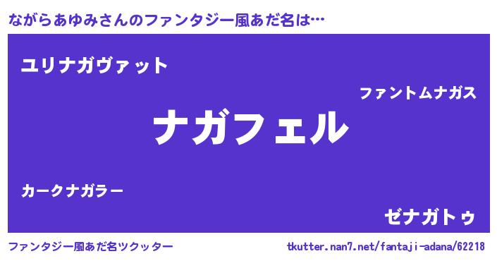 | 男性向けラノベタイトル風あだ名 | 『ながらあゆみの憂鬱』 |