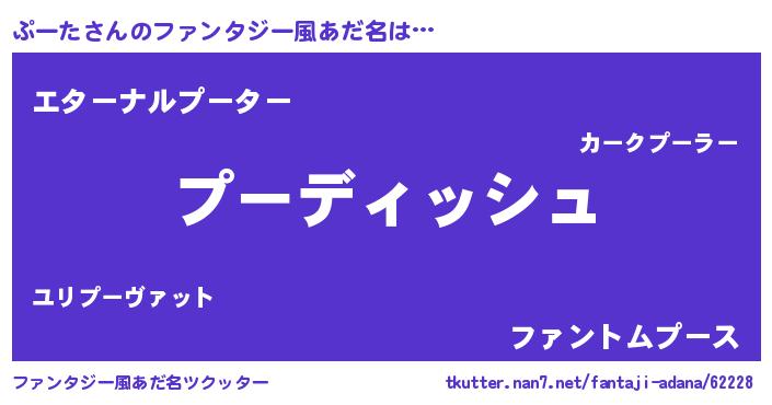 | 男性向けラノベタイトル風あだ名 | 『ぷーたという概念が存在しない退屈な世界 』 |