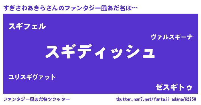 | 男性向けラノベタイトル風あだ名 | 『すぎさわあきらという概念が存在しない退屈な世界 』 |