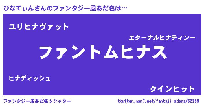 | 男性向けラノベタイトル風あだ名 | 『ダンジョンにひなてぃんを求めるのは間違っているだろうか』 |