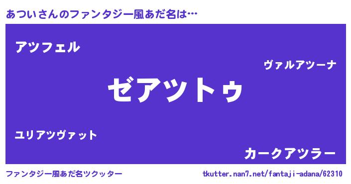 | 意味不明あだ名 | 『自称あつい』『ペロリンあつい』 |