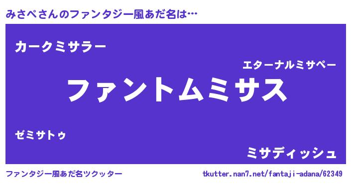 | ポケモン風あだ名 | 『ミサゴンZ』『ヒミサペ』『ゼニミサ』 |