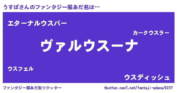 | 男性向けラノベタイトル風あだ名 | 『うすばに滅ぼされるだけの簡単なお仕事です』 |