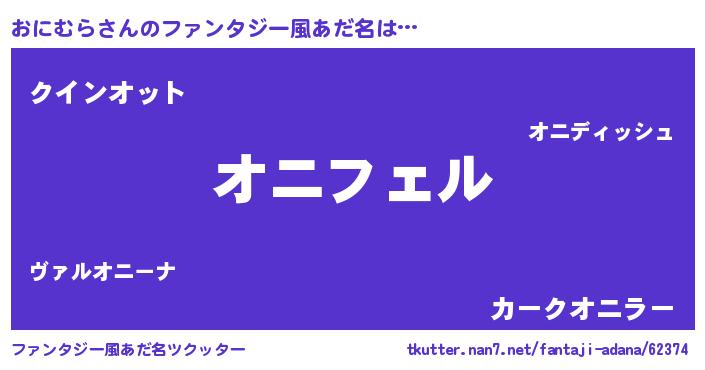 | 女子向けラノベタイトル風あだ名 | 『おにむら姫と円卓の騎士』 |