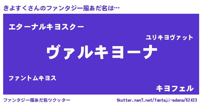 | 男性向けラノベタイトル風あだ名 | 『魔弾の王ときよすく』 |