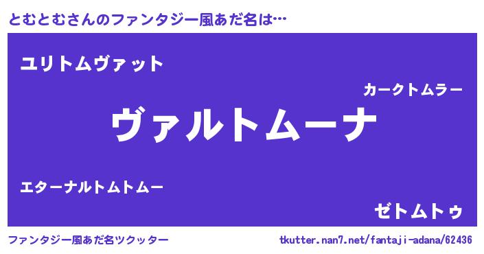 | 男性向けラノベタイトル風あだ名 | 『この素晴らしい世界にとむとむを!』 |