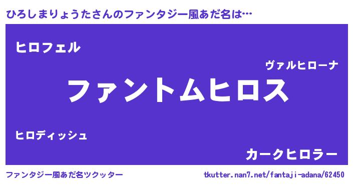 | ポケモン風あだ名 | 『ヒヒロシマリョウタ』『ヒロチュウ』 |