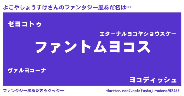 | 男性向けラノベタイトル風あだ名 | 『よこやしょうすけに滅ぼされるだけの簡単なお仕事です』 |