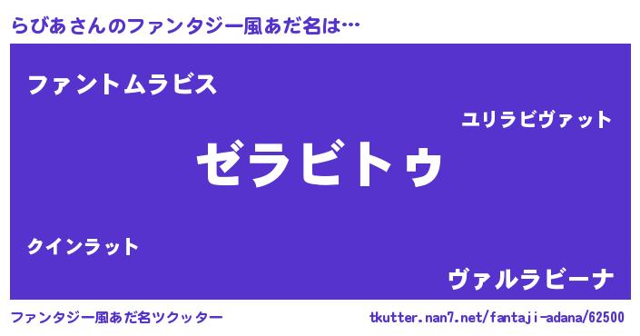 | ヘコむあだ名 | 『らびを』『豆乳』『らびふぇ~』 |