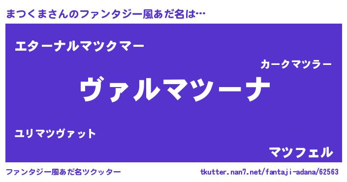 | 男性向けラノベタイトル風あだ名 | 『この素晴らしい世界にまつくまを!』 |
