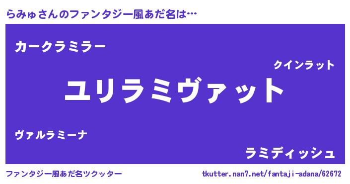 | 女子向けラノベタイトル風あだ名 | 『らみゅの玉の輿計画!』 |
