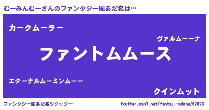 | 女子向けラノベタイトル風あだ名 | 『むーみんむーは平凡を望む』 |