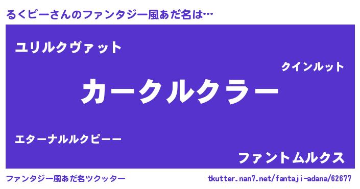 | 胡散臭い通販商品みたいなあだ名 | 『信頼と実績のサプリメント…その名も「るくピー」』 |