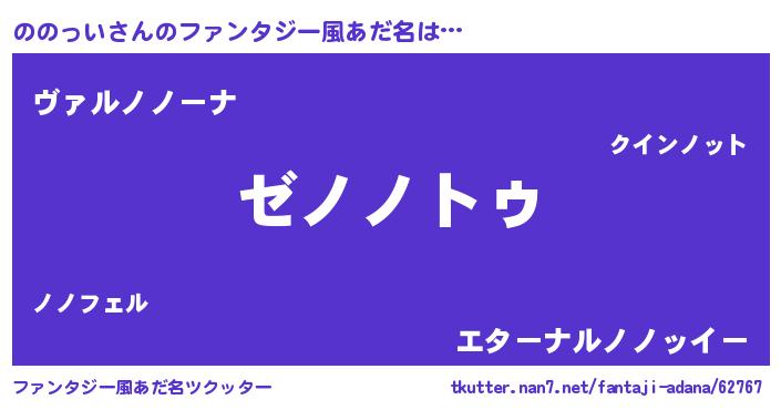 | 男性向けラノベタイトル風あだ名 | 『Re:ののっいから始める異世界生活』 |
