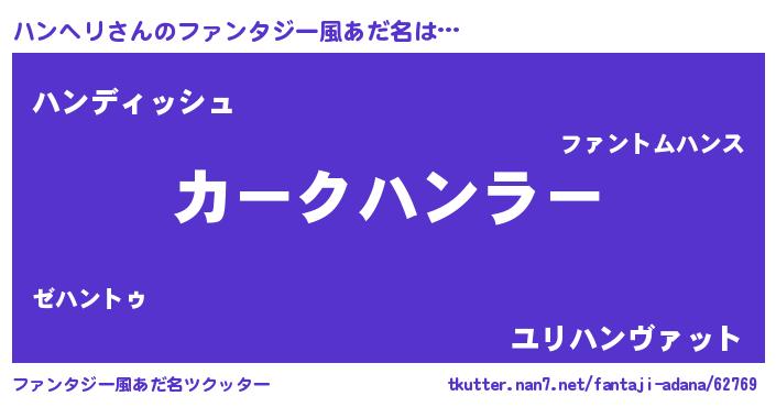 | 意味不明あだ名 | 『永久保存ハンヘリ』『自称ハンヘリ』 |