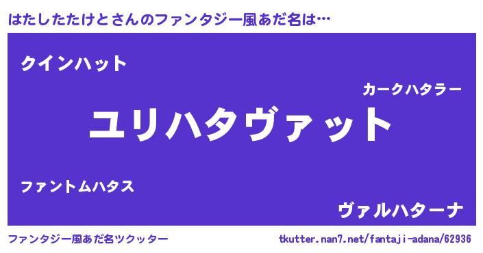 | 男性向けラノベタイトル風あだ名 | 『転生したらはたしたたけとだった件』 |